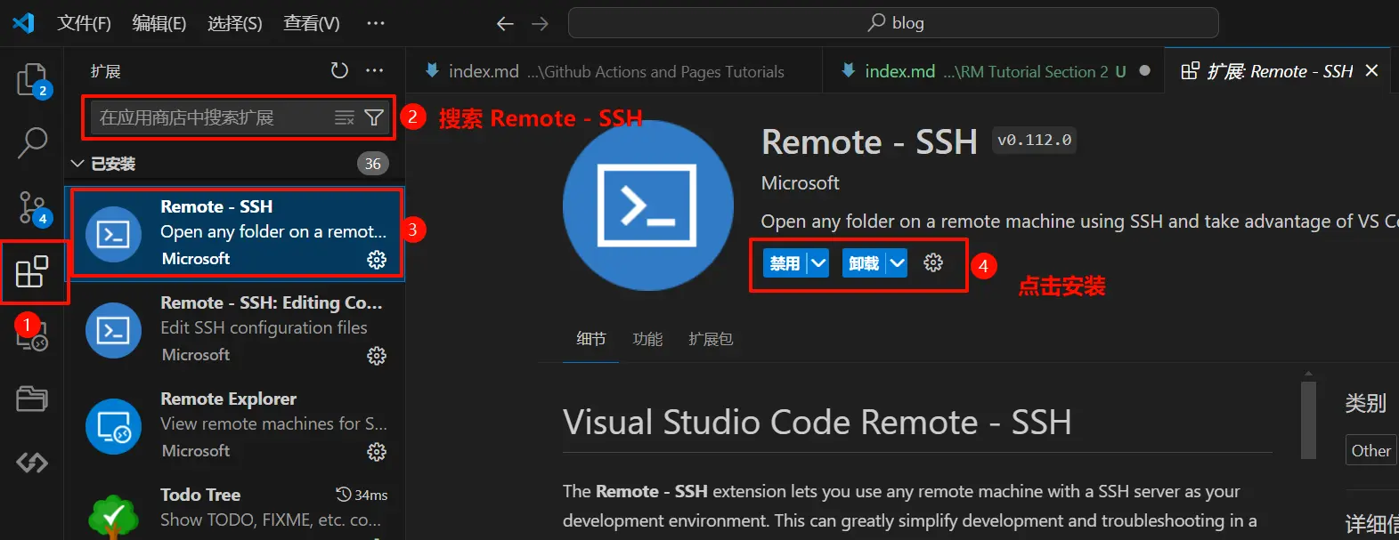 通过在 VSCode 的拓展栏进行搜索,可以很轻易地找到 VSCode 的 SSH 插件: